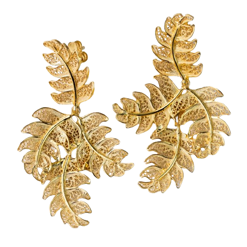 Golden Silber Laubohrringe. Die Tradition des Philighers und des aktuellen Designs.