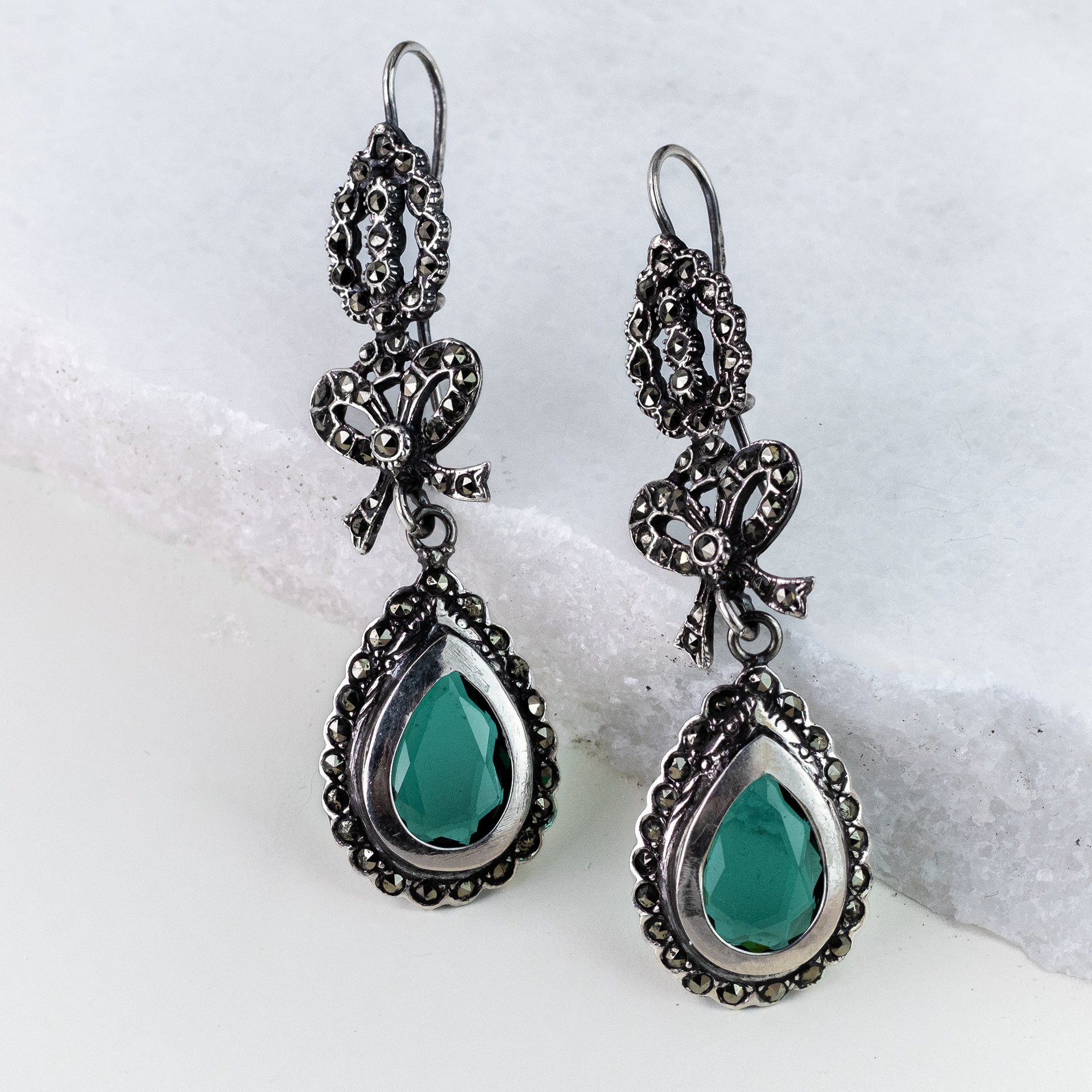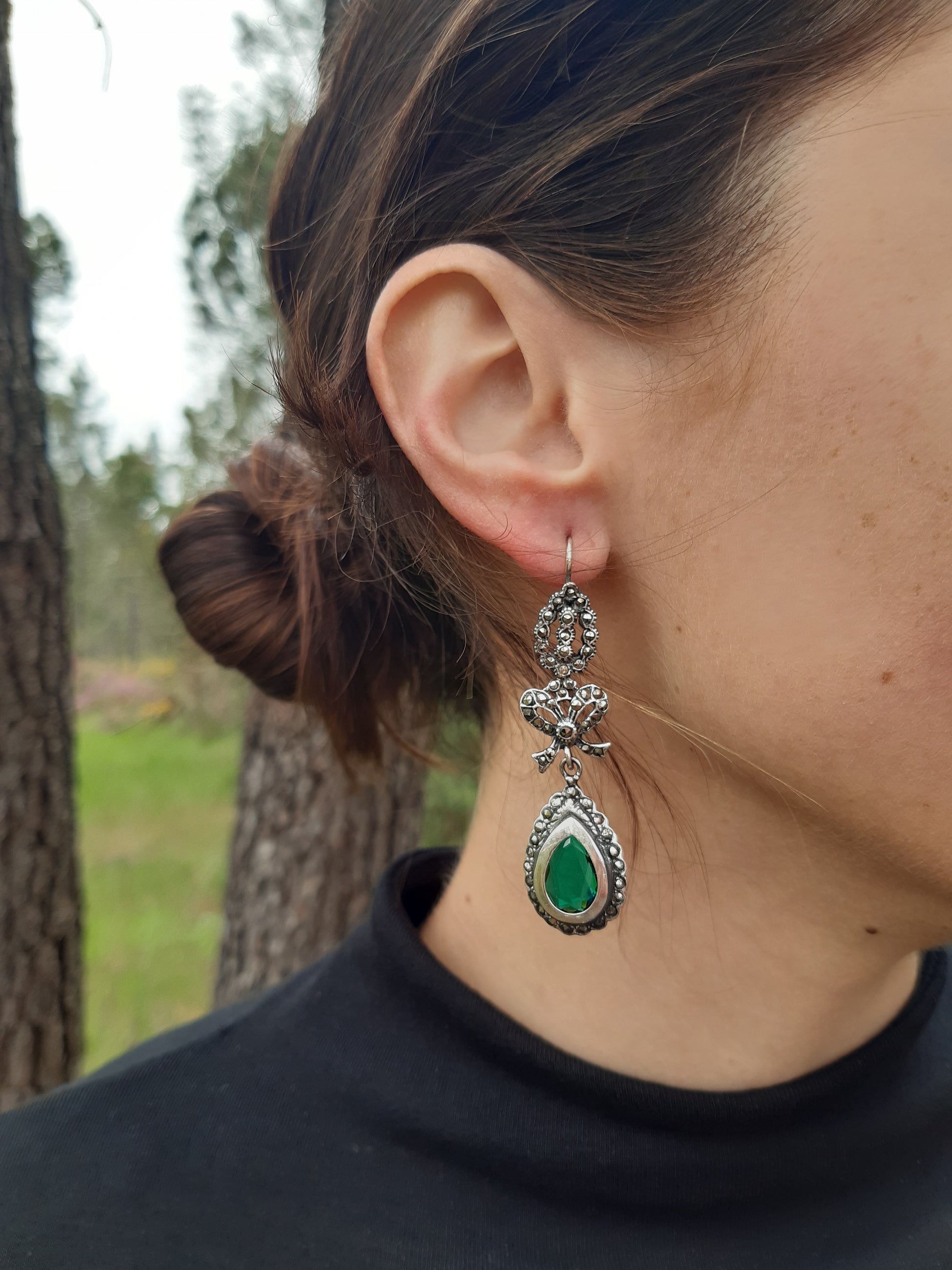 Brincos pedra verde de inspiração palaciana. Tradição portuguesa.