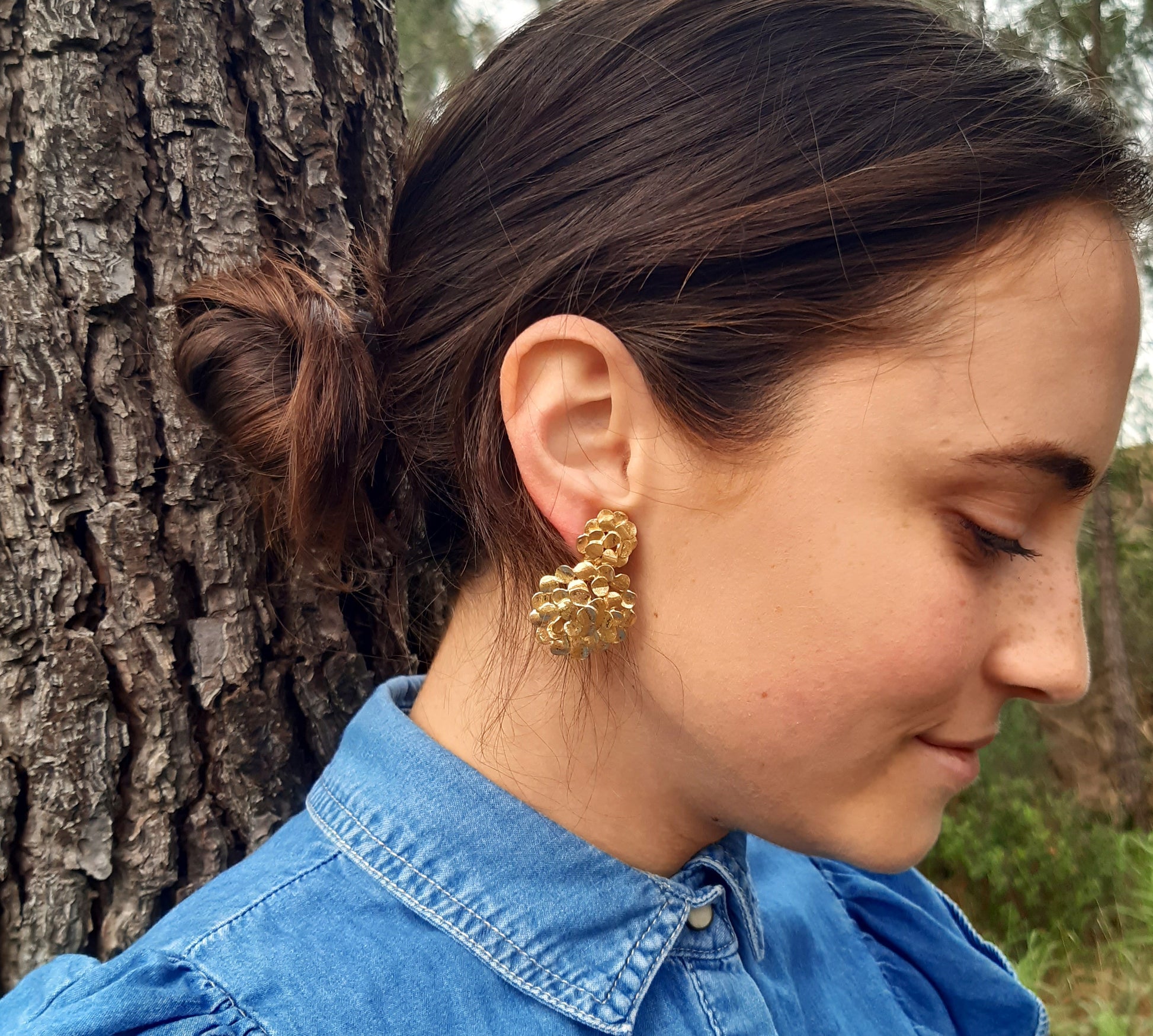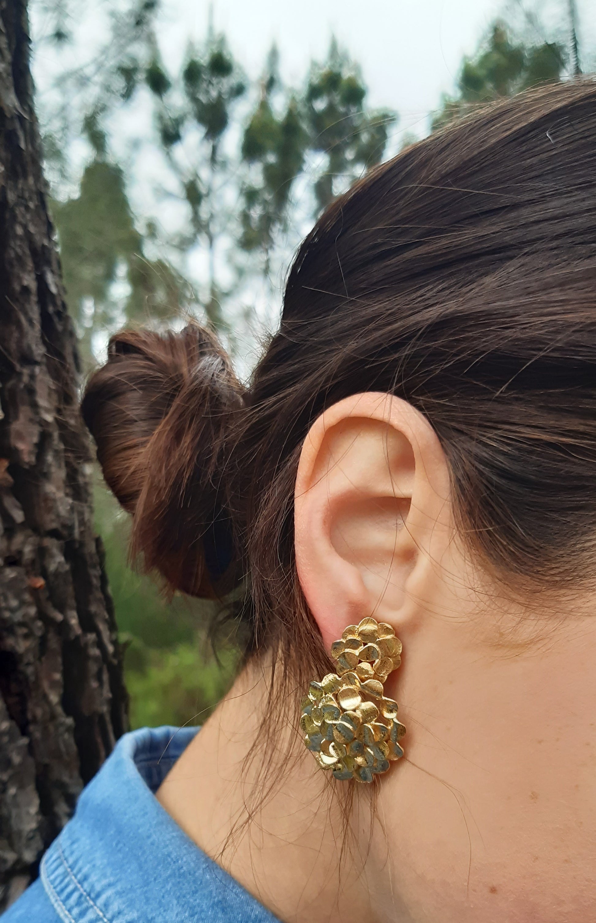 Brincos colmeia dourada. Inovação e tendência.