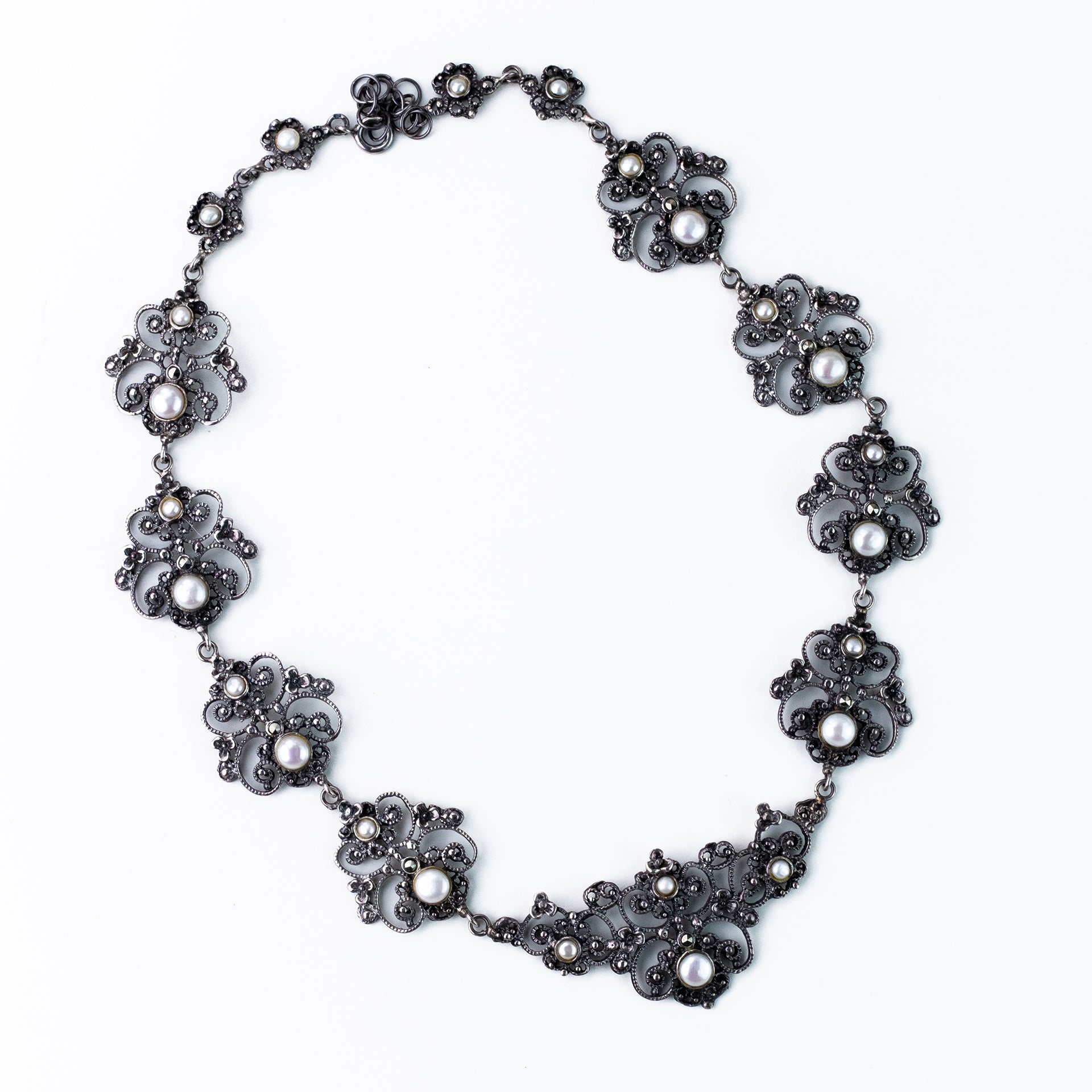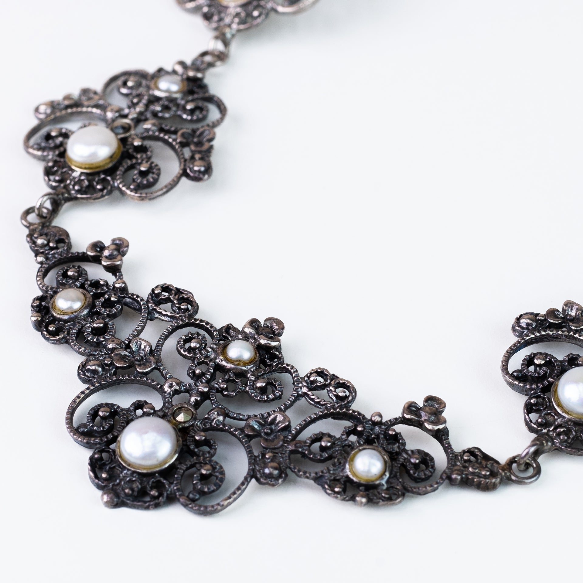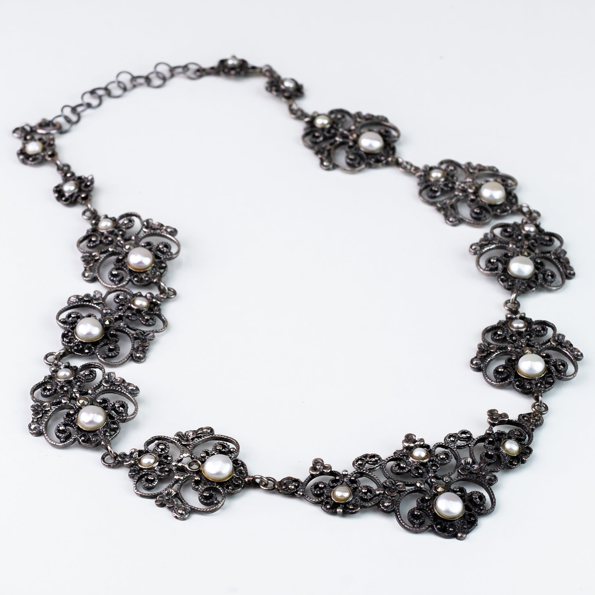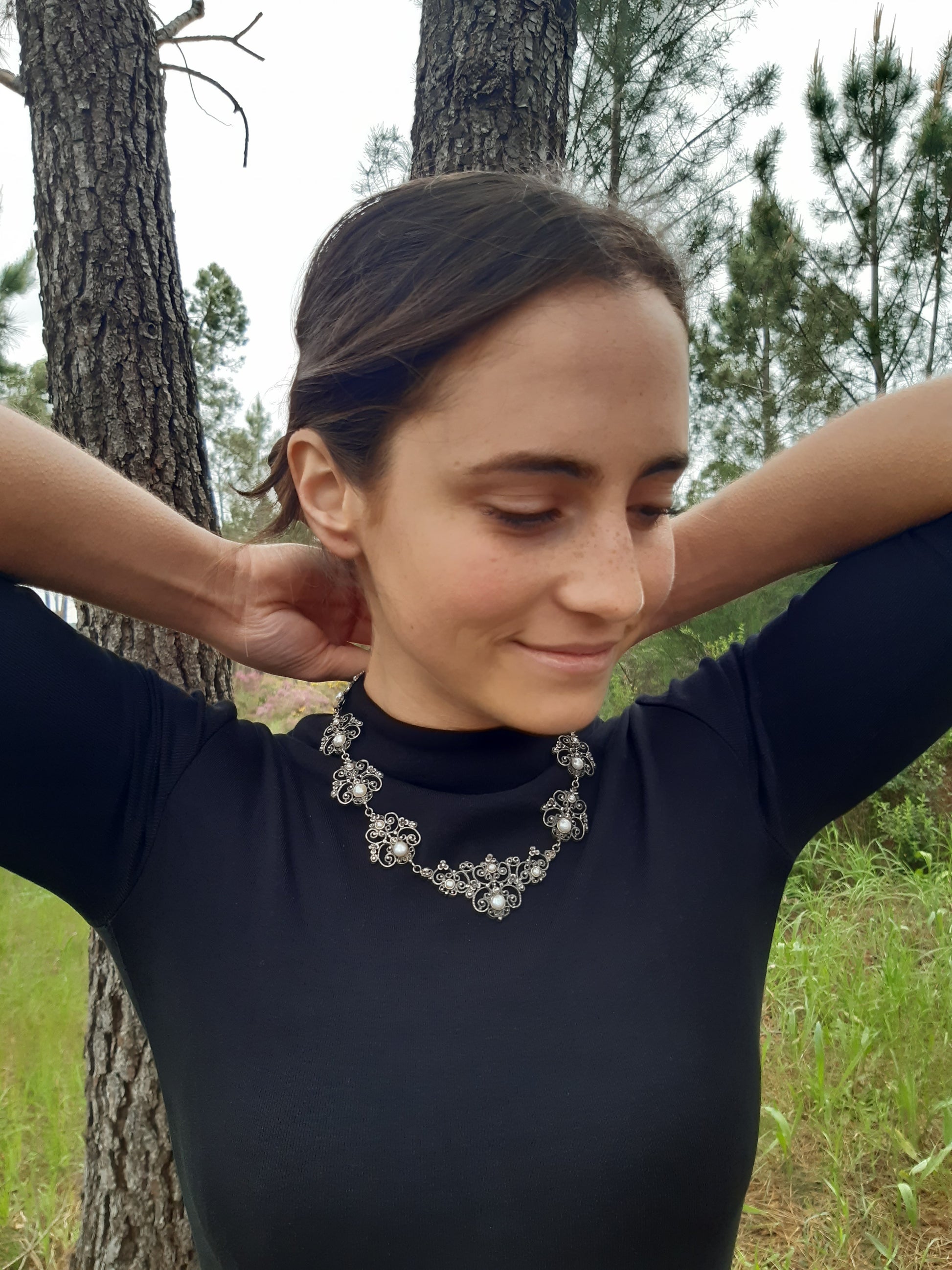 Colar romântico - Noite de Baile - de prata oxidada com pérolas.