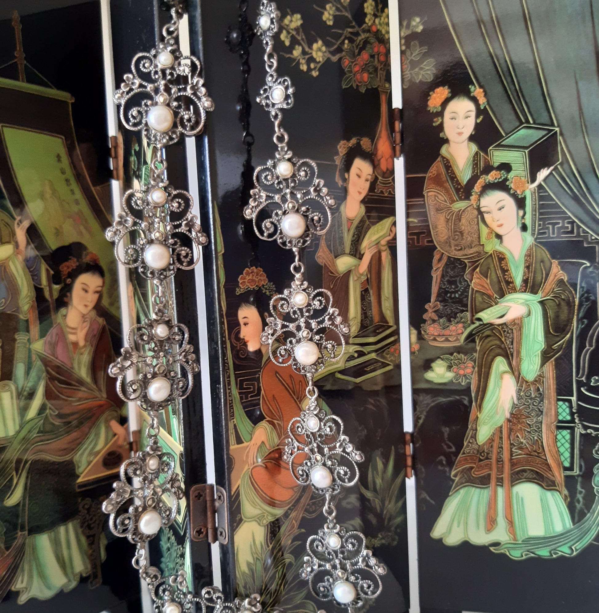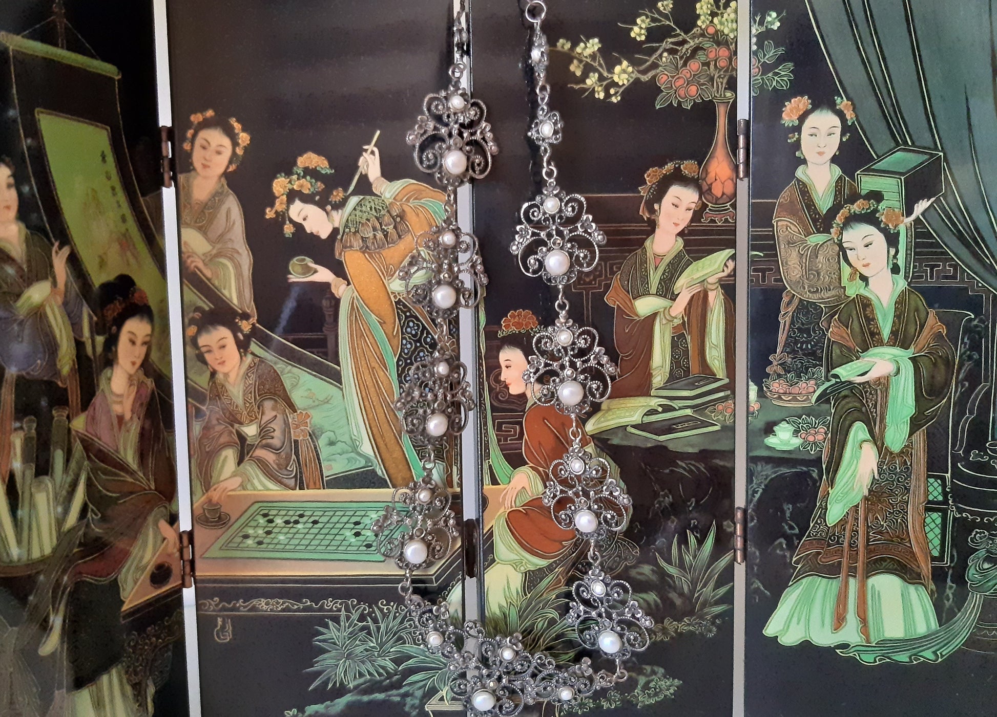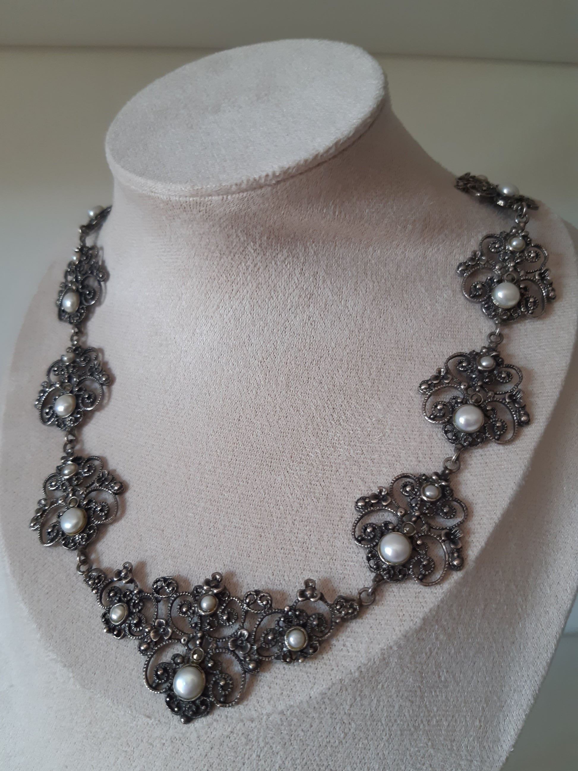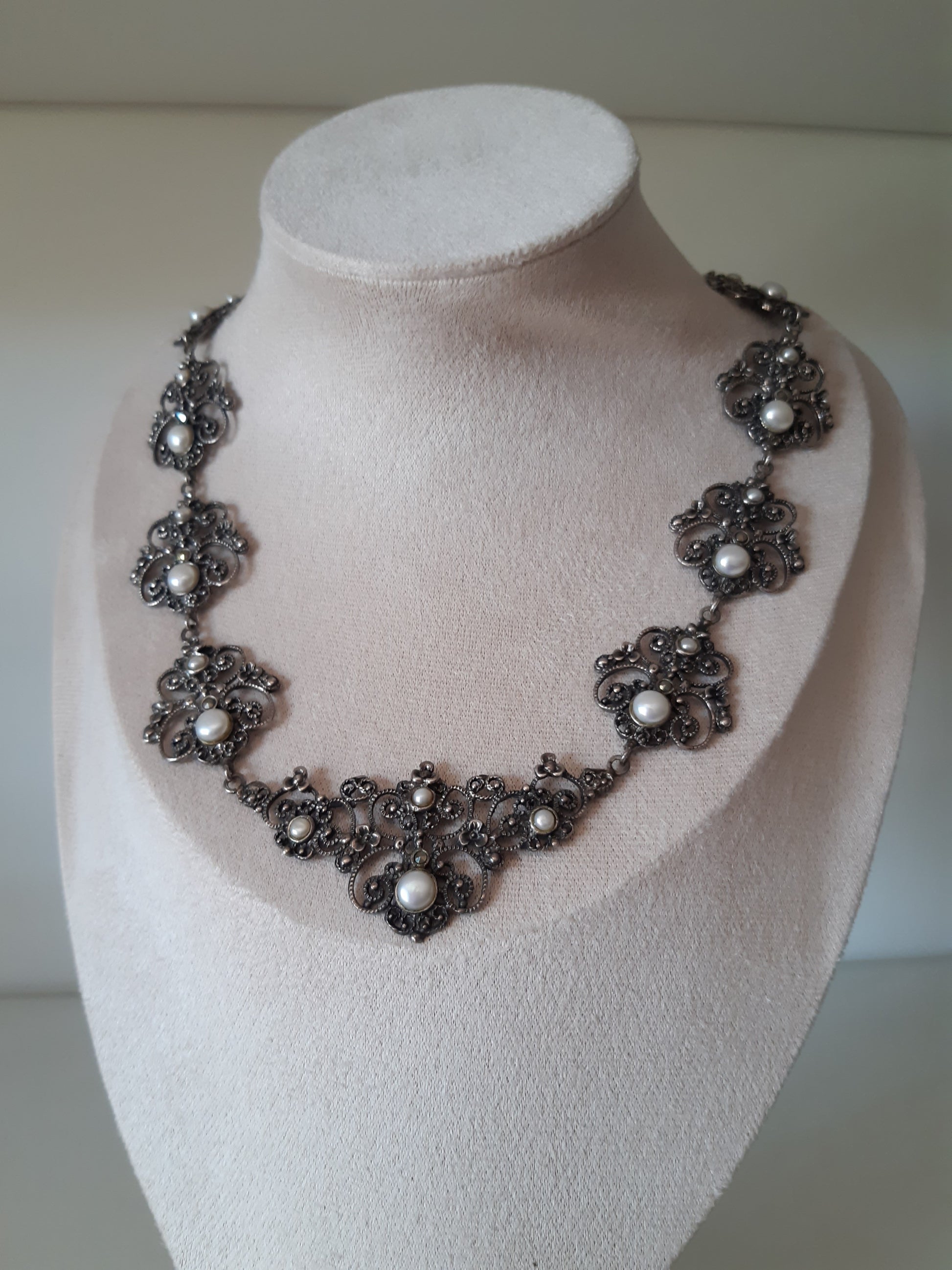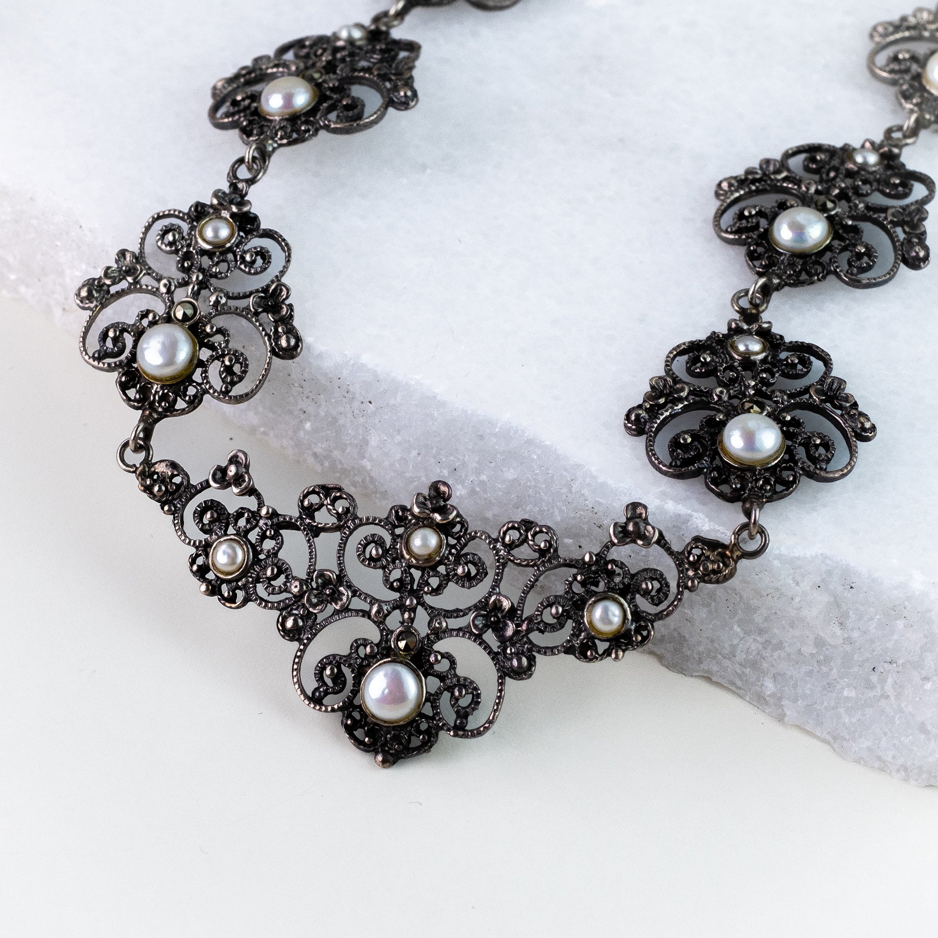 Colar romântico - Noite de Baile - de prata oxidada com pérolas.