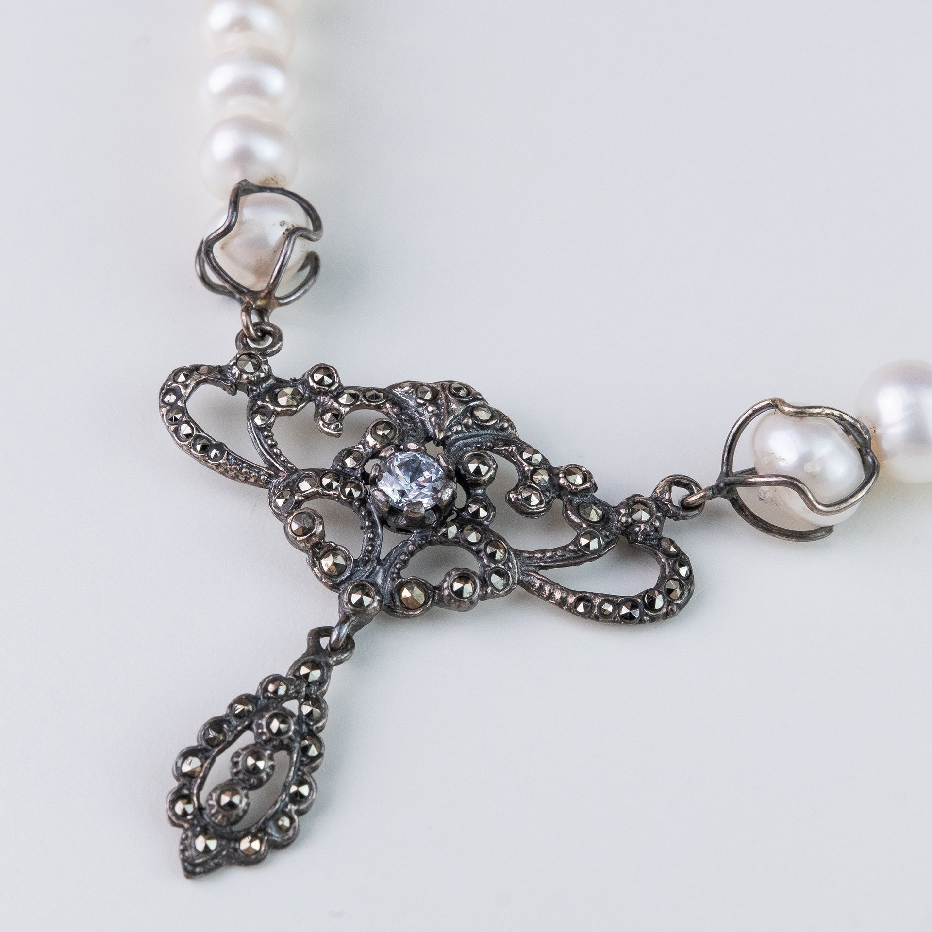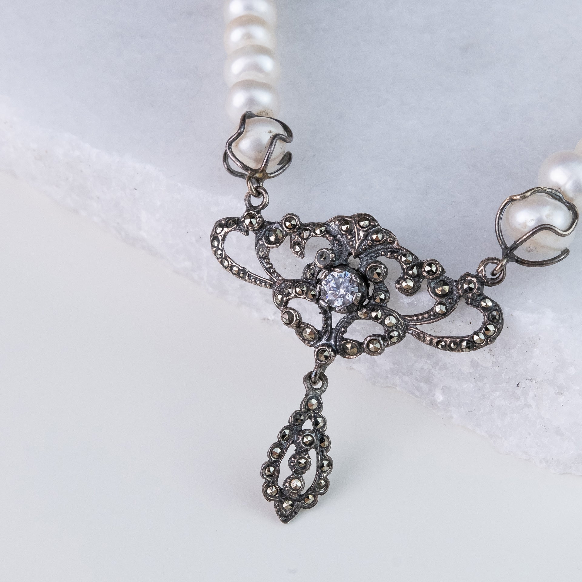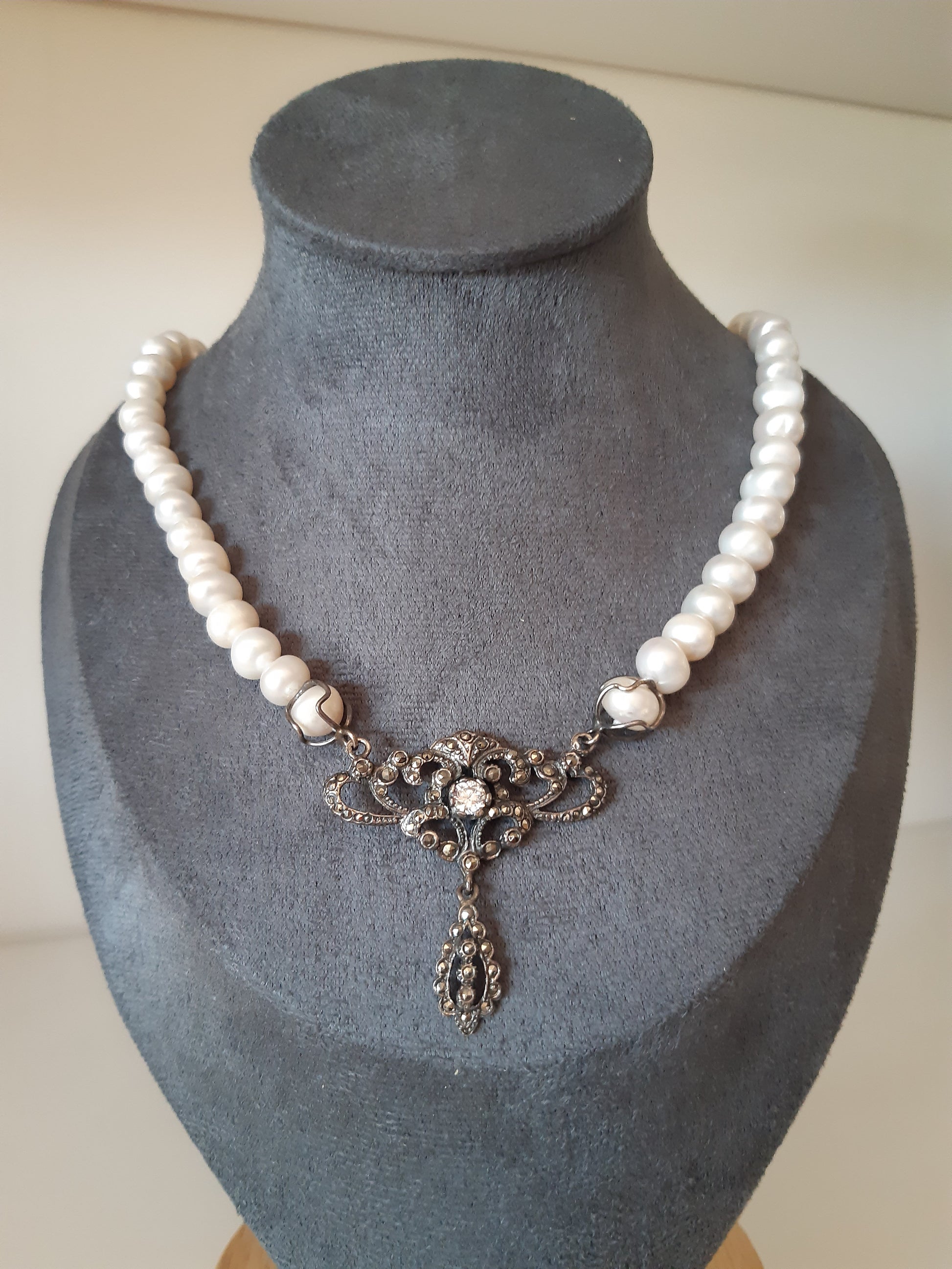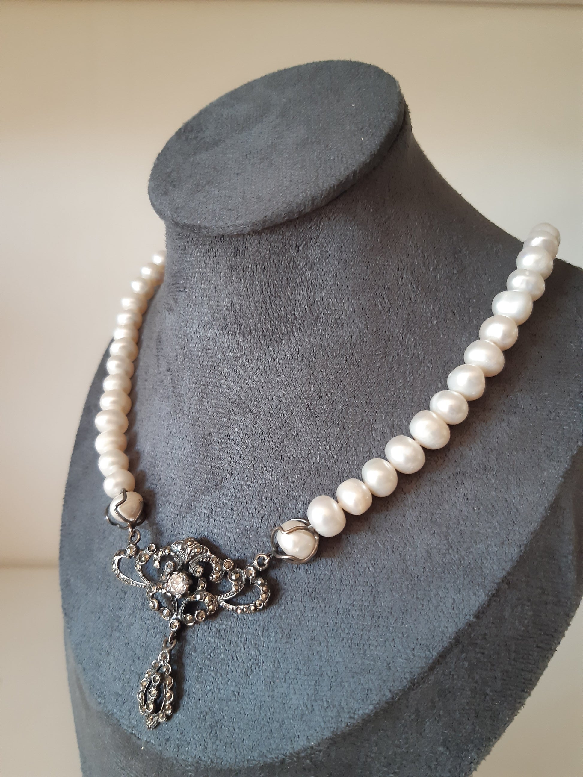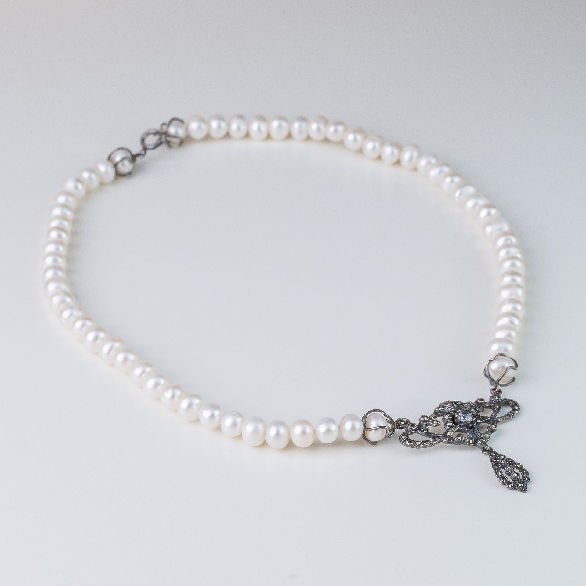 - Material – prata 925 com marcassites e pérolas