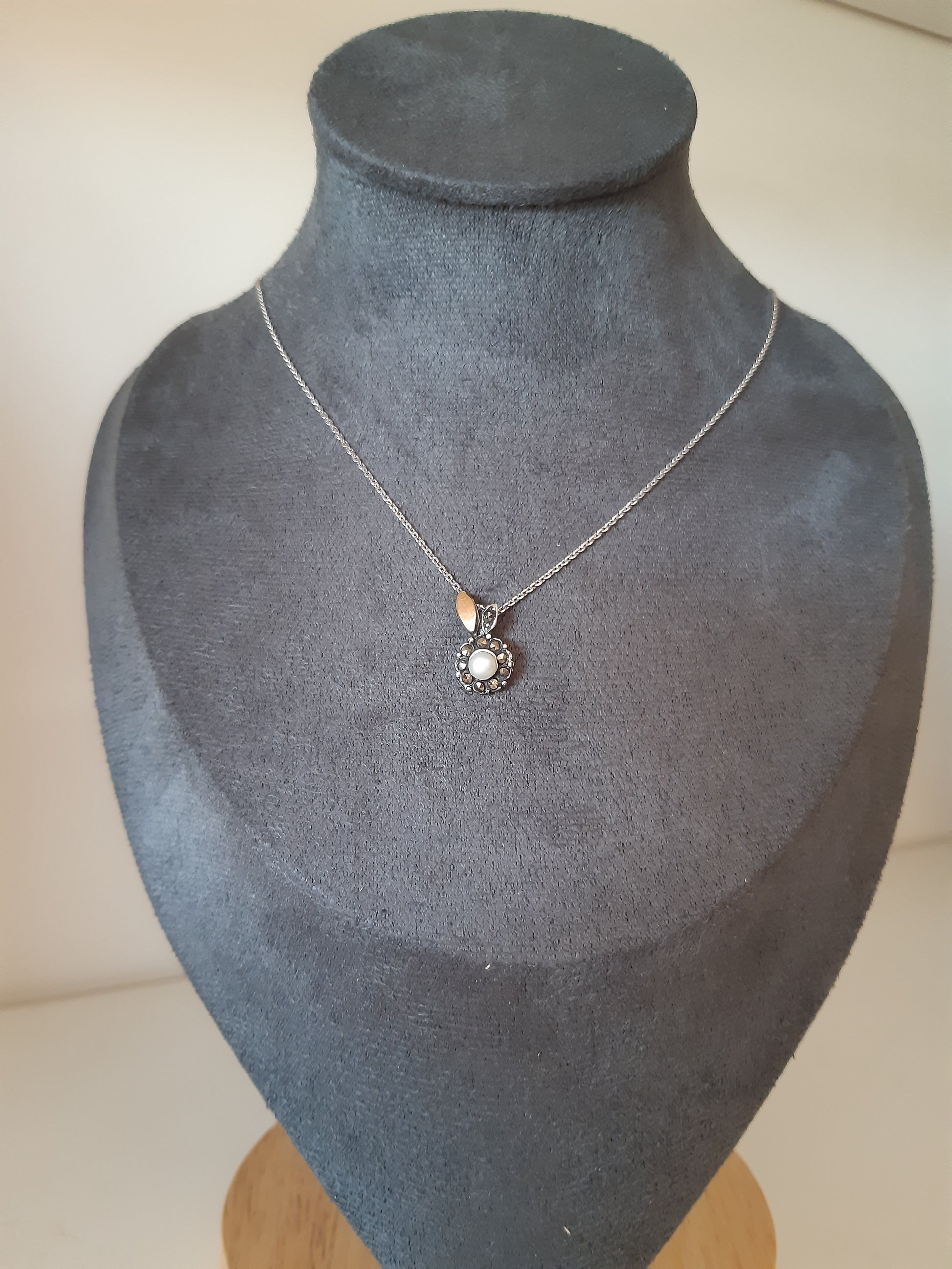 - Material – prata 925 com marcassites e pérolas