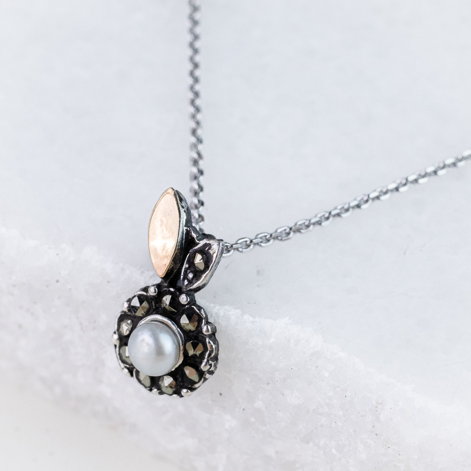 - Material – prata 925, ouro, marcassites e pérola