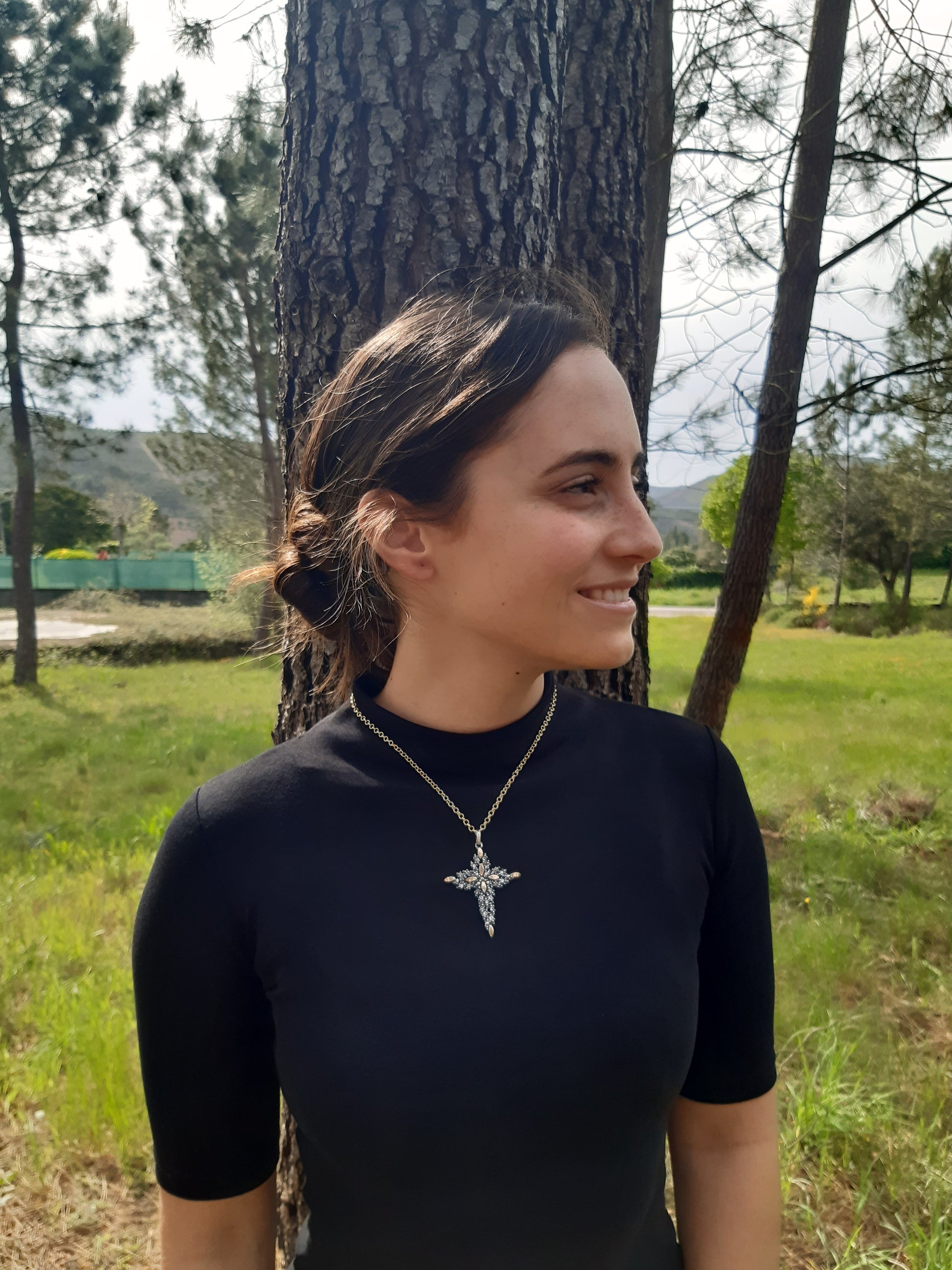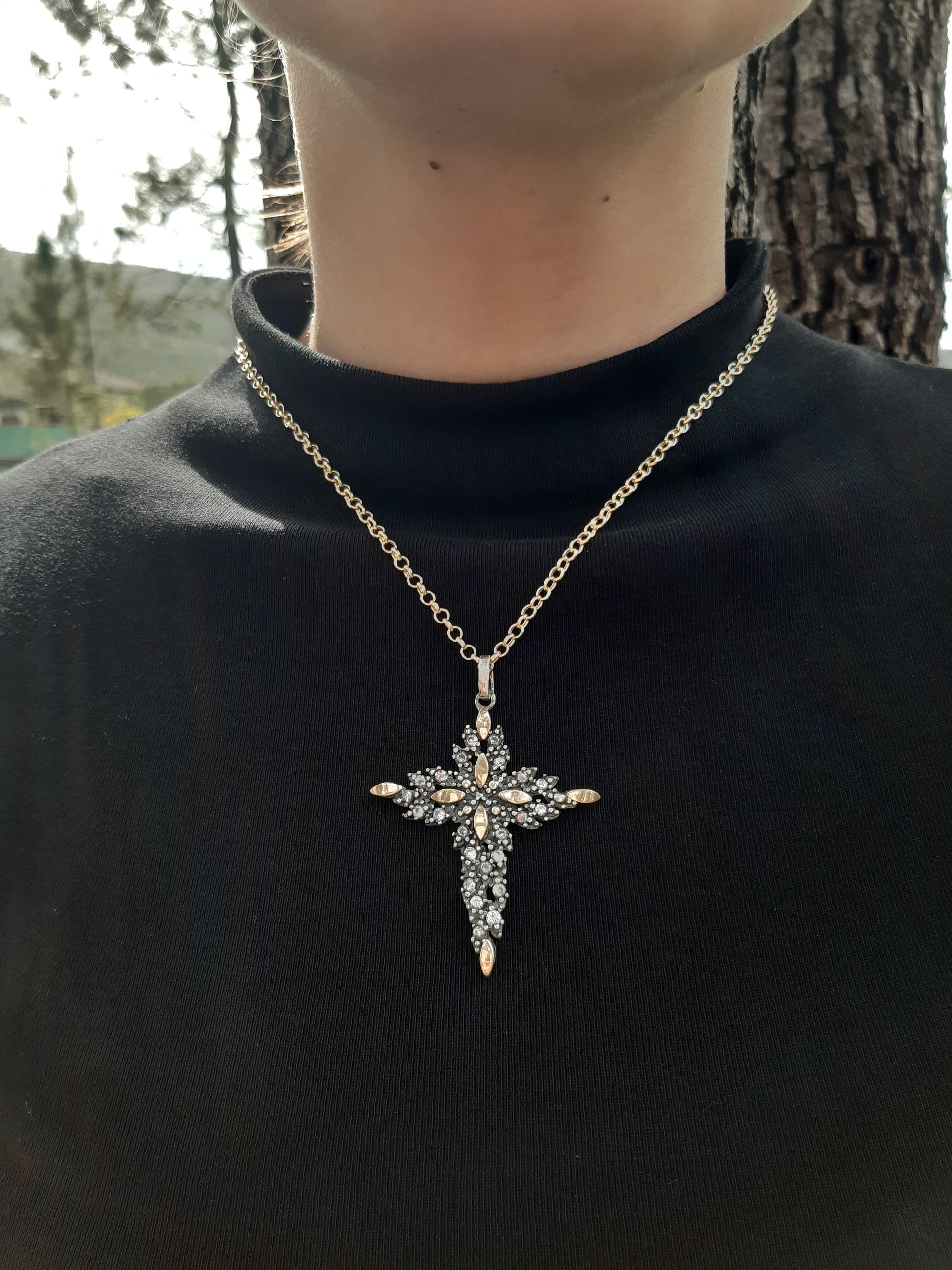 Cruz lindíssima para pendurar em fio com ouro e zircónias