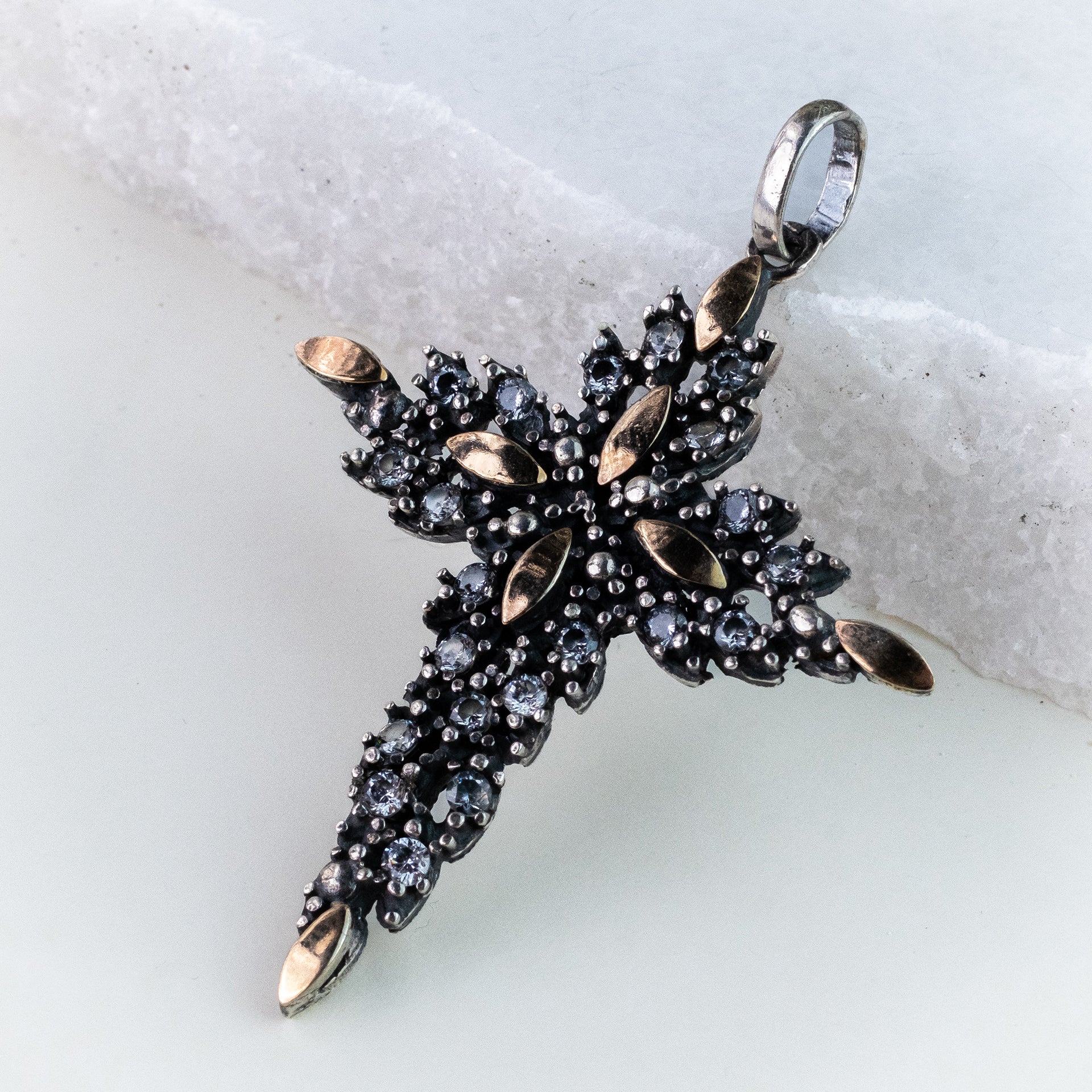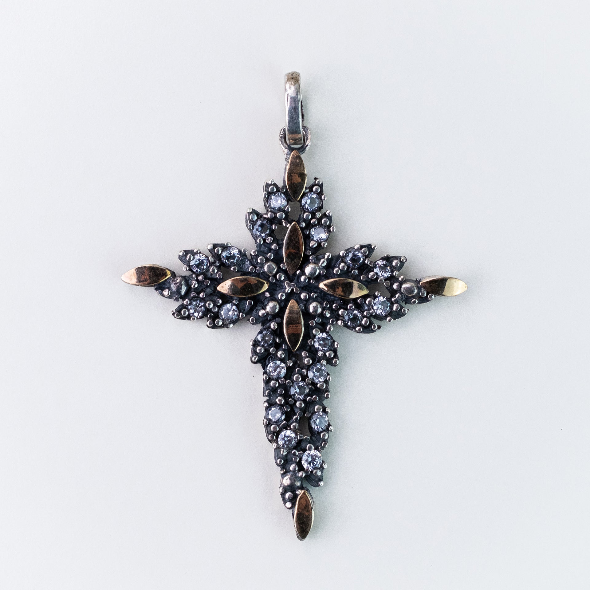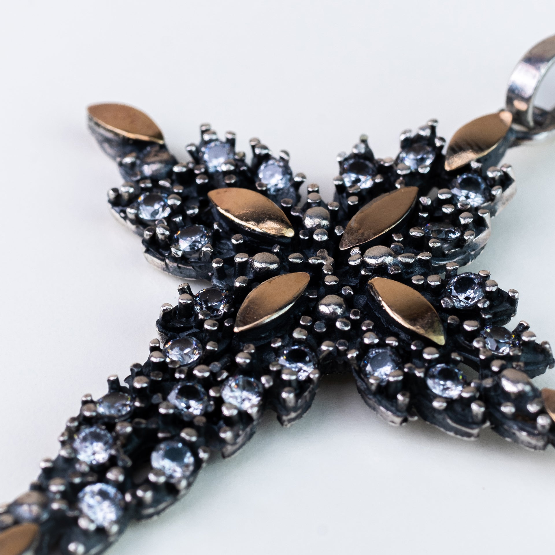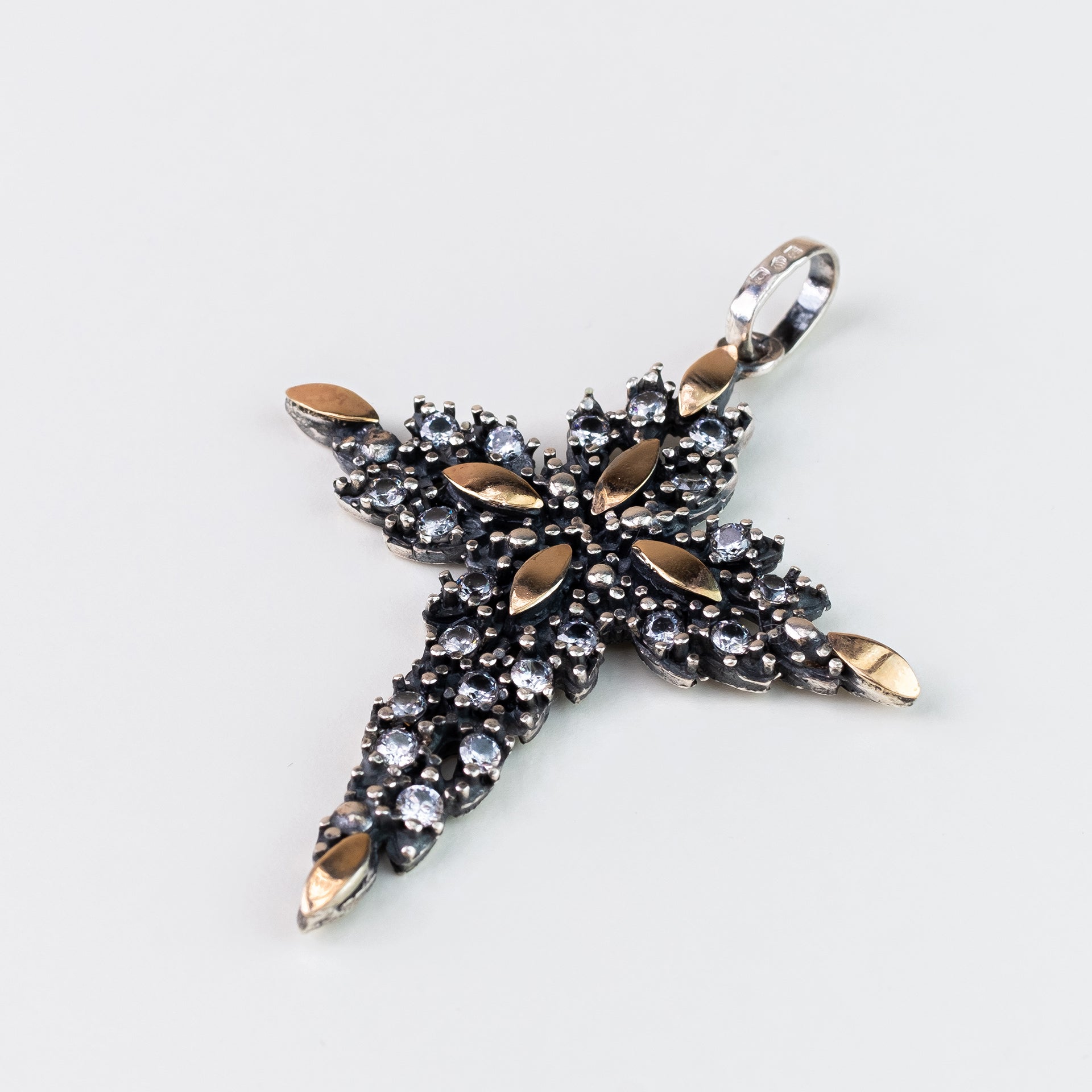 Cruz Prata com Folhas de Ouro